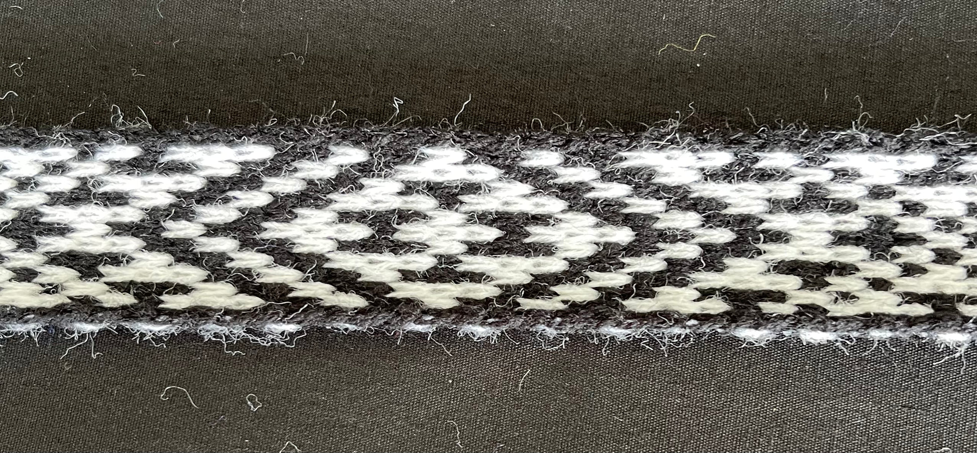 This black and white Taniko Band is 1 inches wide. This is available for 1 metre or a 5 metre roll. Patiki (flounder) designs are based on the diamond shape of the flounder fish. The flounder is a symbol of favourable times, prosperity and good luck.