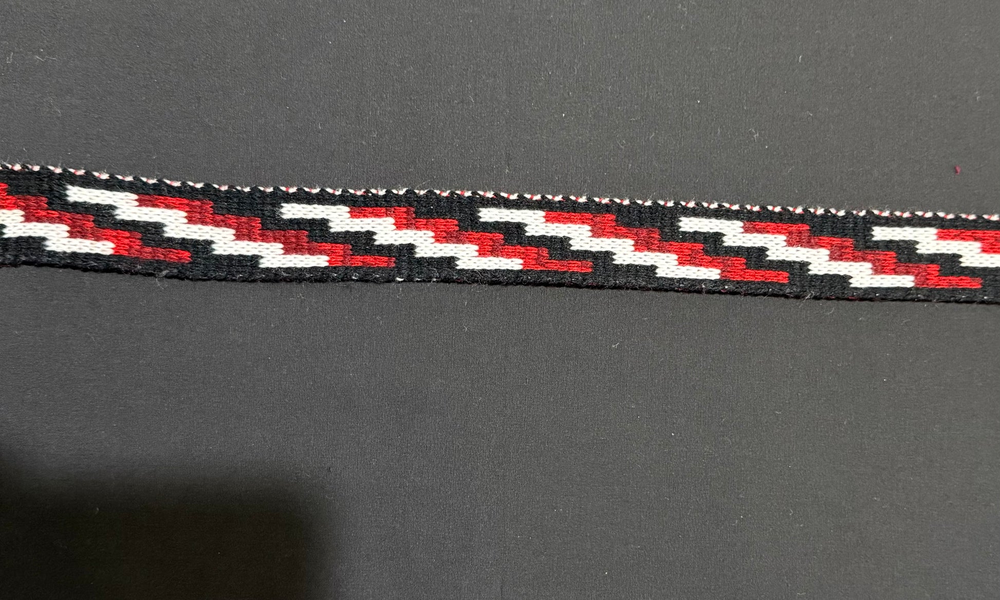 1inch Maroon & Red Mixed Black and White Poutama Taniko Design Band