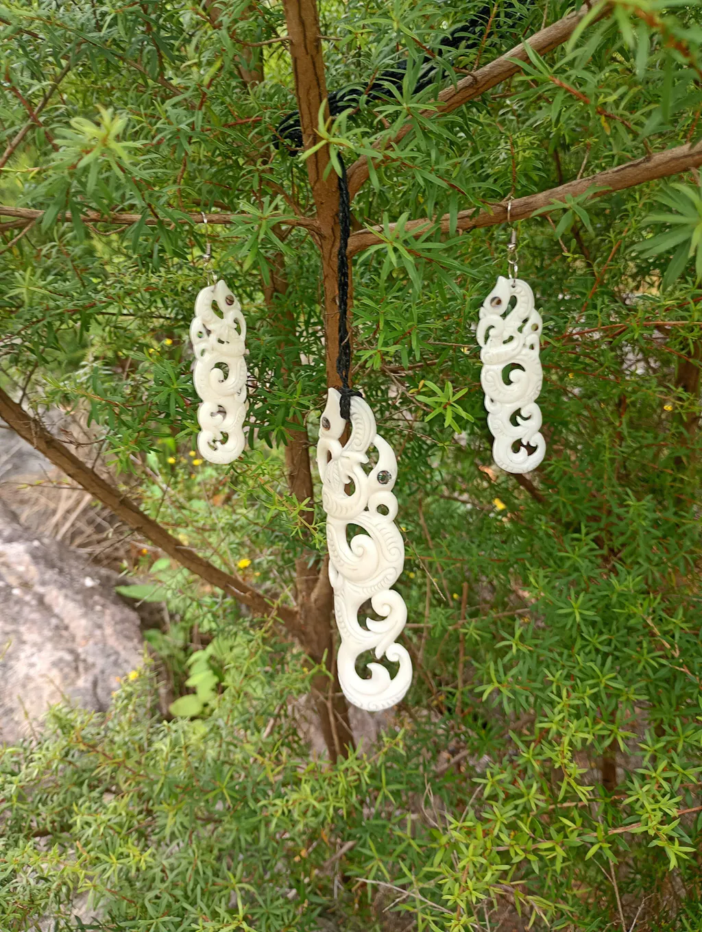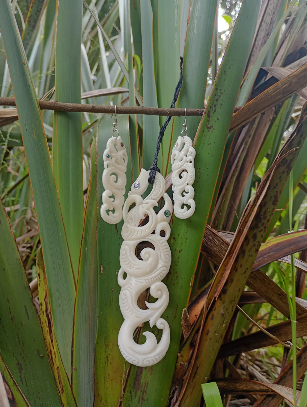 Bone Manaia Set - Bone Necklace & Earrings