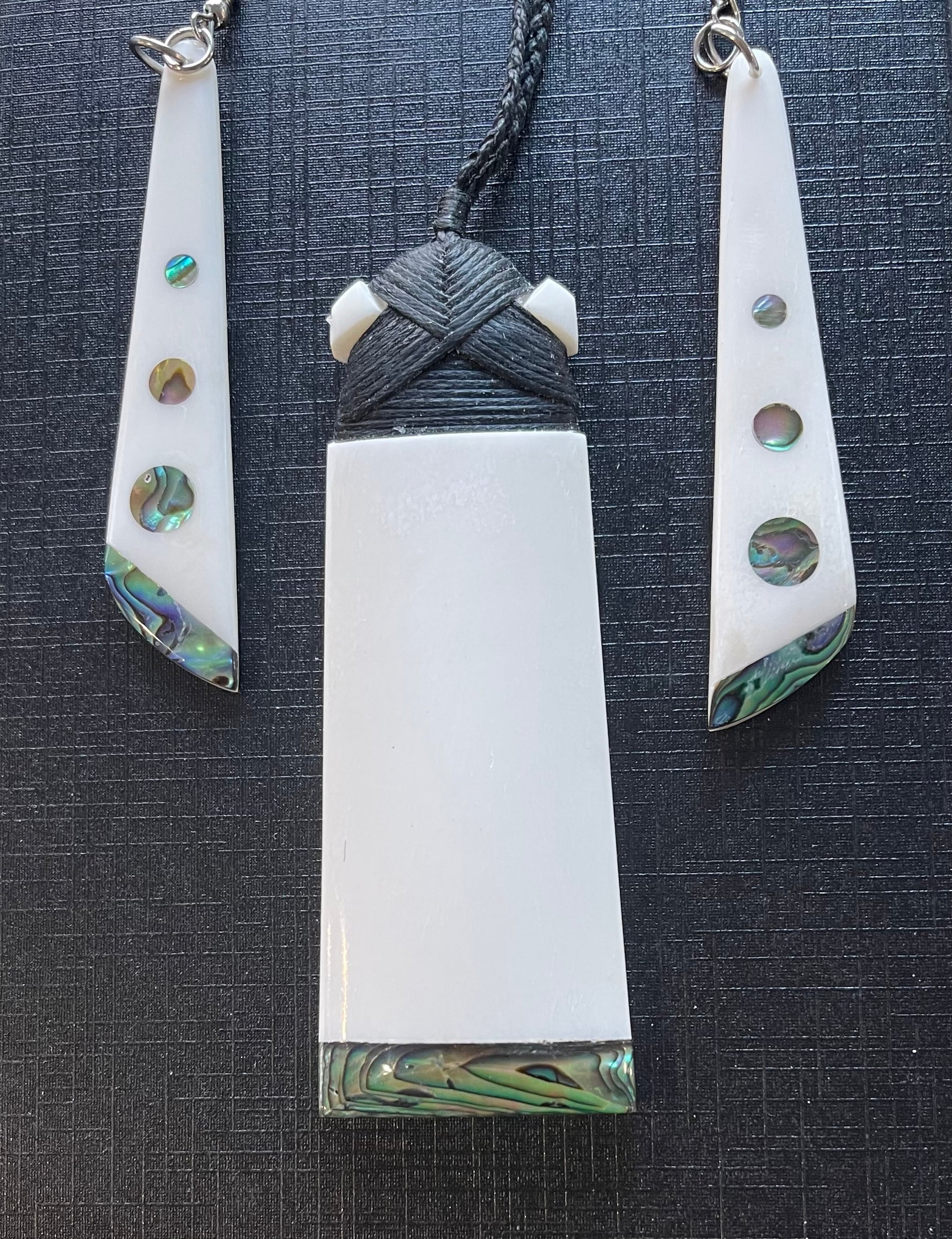 Bone Toki Paua Set - Bone Necklace & Earrings