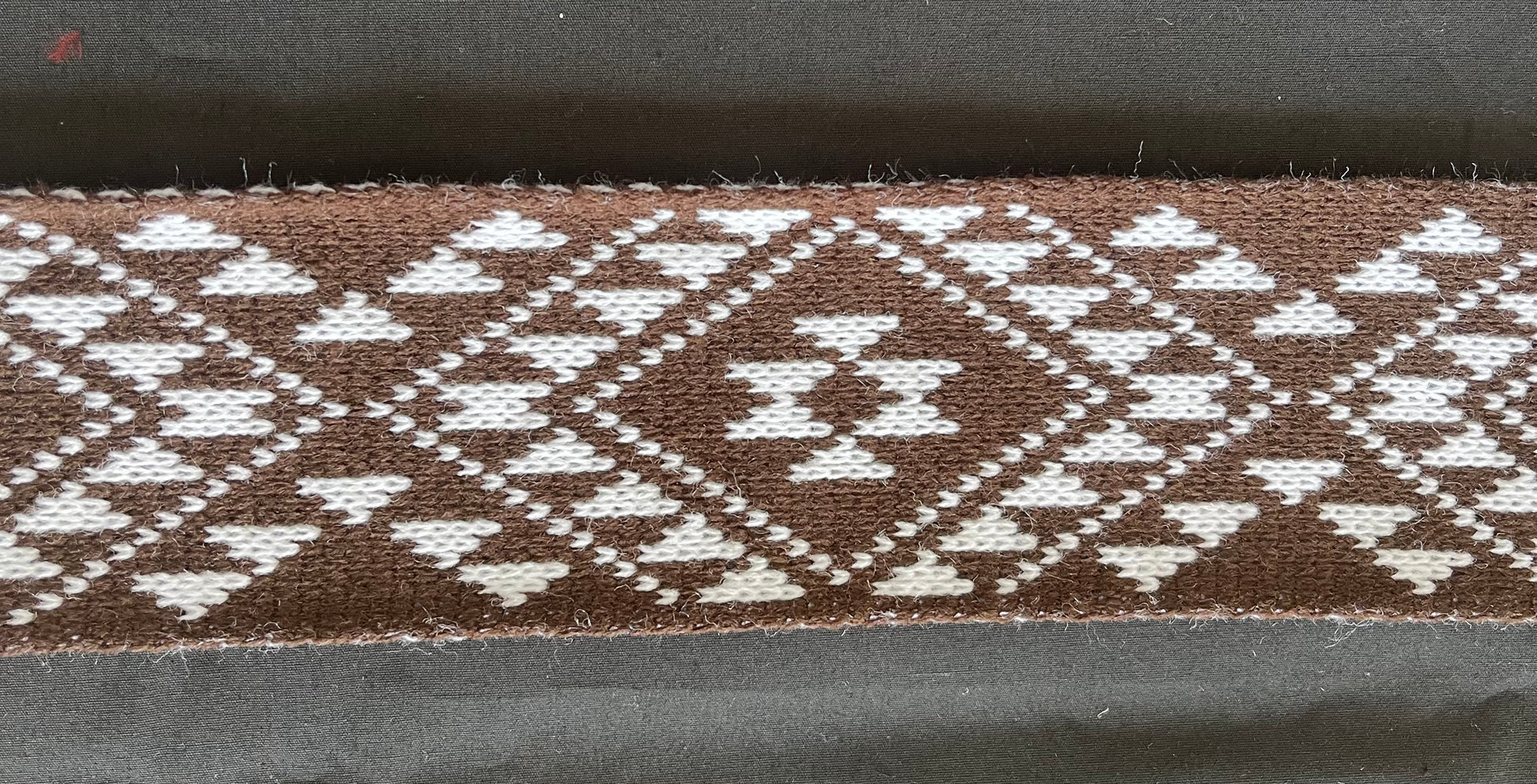Chocolate and White 2.5 inches wide taniko band. This is for 1 Metre also available in 5 metre roll. Pātiki (flounder) designs are based on the diamond shape of the flounder fish. The flounder is a symbol of favourable times, prosperity and good luck.
