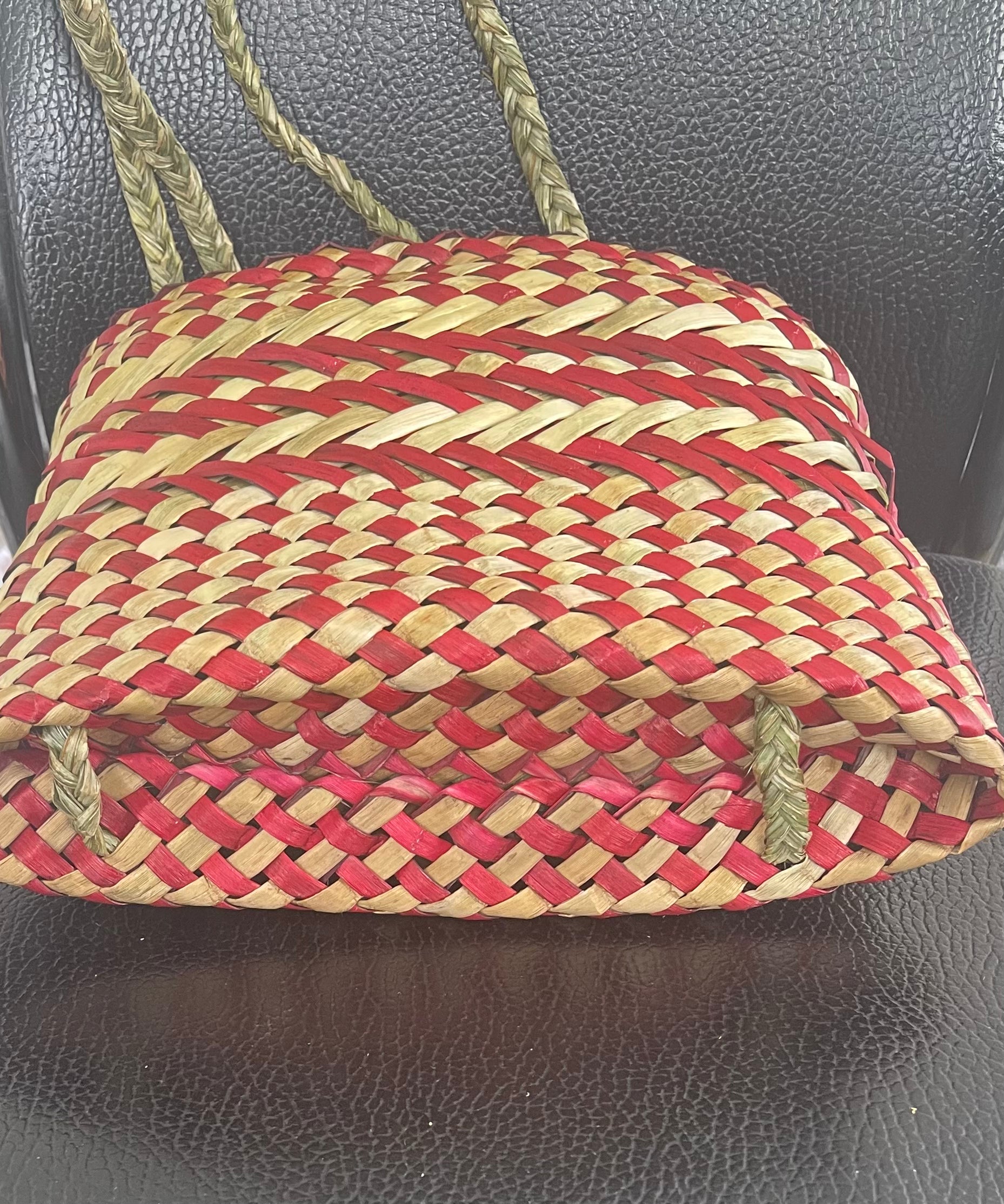 Flax Kete - Red and Natural