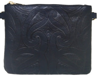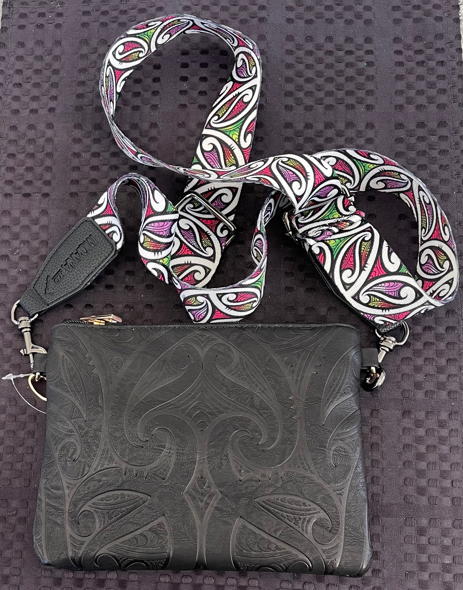 Moana Road - Clutch Bag Black With Maori Design Strap