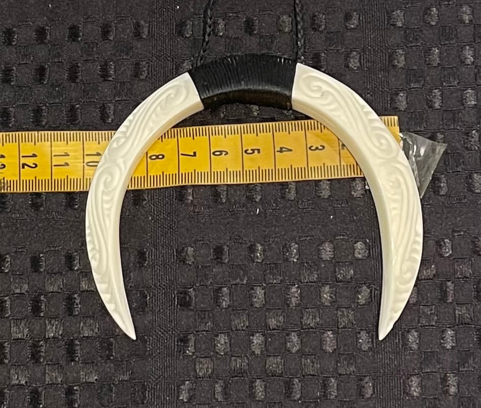 This Pig Tusk Necklace is perfect for those looking for a unique accessory. Made from beef bone, it's an eye-catching addition to any wardrobe. It's lightweight yet durable, and the natural texture of the material adds character and visual interest.