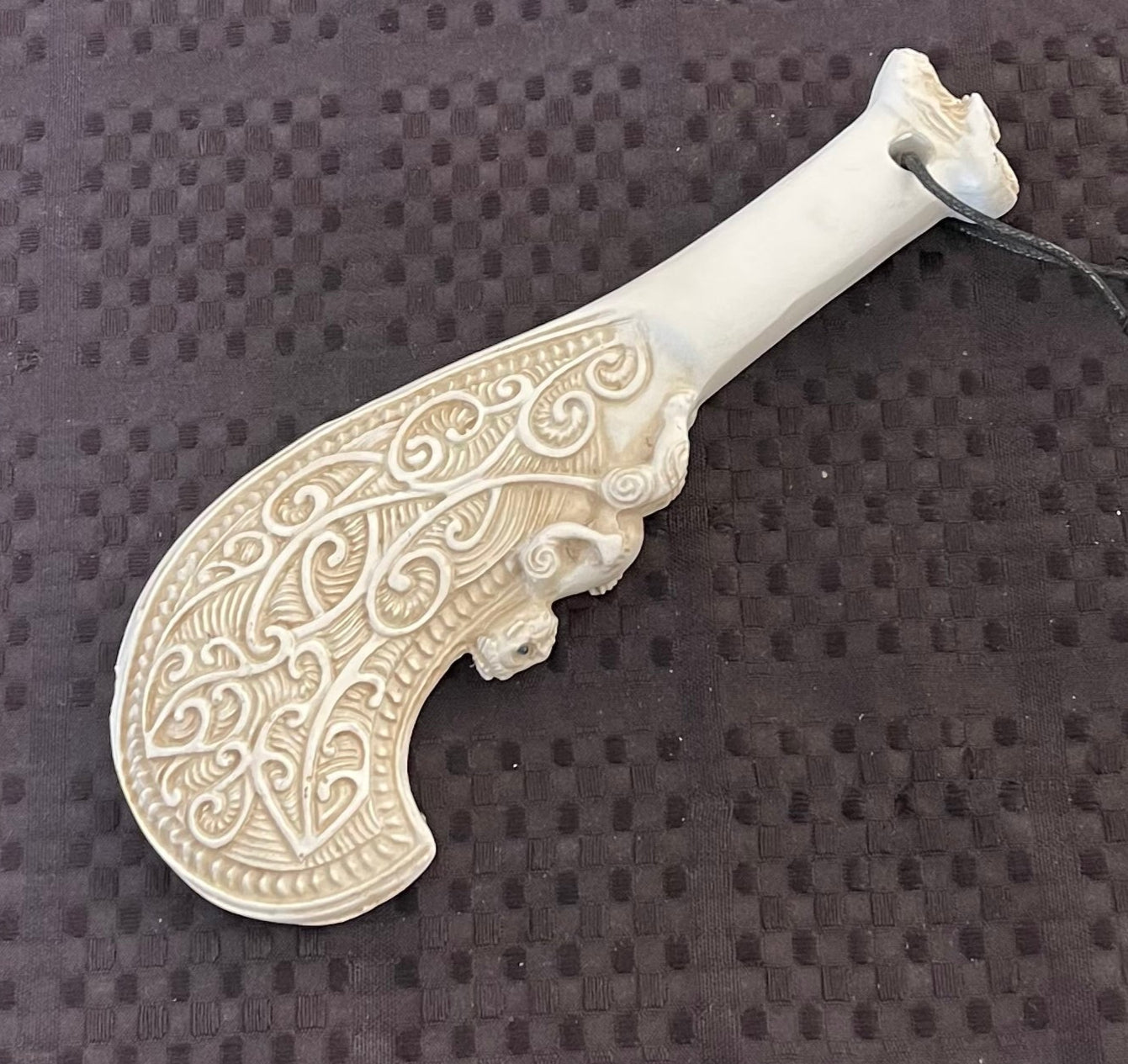 This polystone Maori Patu is crafted using durable resin. These are made from a mould. Patu is grey.