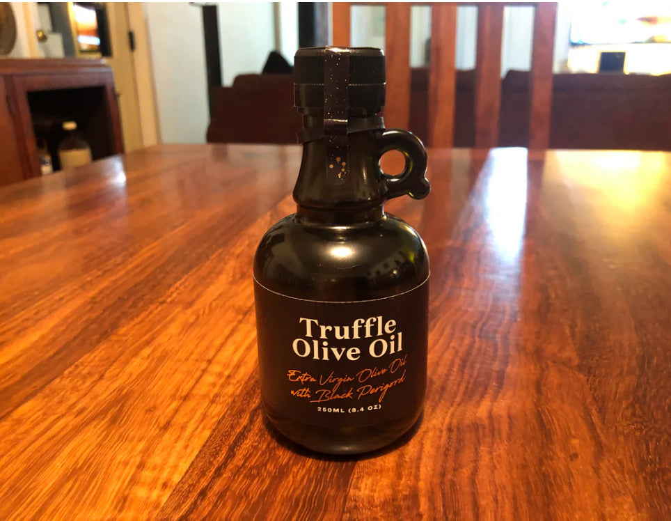 Truffle Infused Virgin Olive oil. A smooth and silky finish to an amazing truffle oil. An amazing and unique intense truffle aroma complementing any dish.