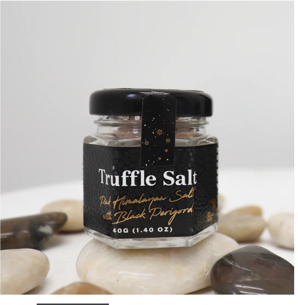 Pink Himalayan Black Truffle salt. An amazing and unique intense truffle aroma complementing any dish.